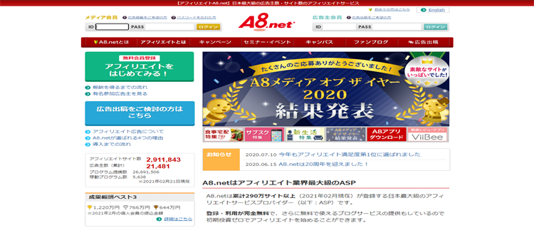 2006年にサービスを開始したアフィリエイトサイトで、PCだけではなくスマホ専用の管理画面が用意されており、ある程度の測定も可能。