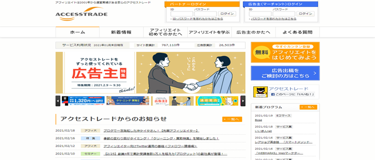 2001年からアフィリエイト提供事業を開始しているACCESSTRADE。